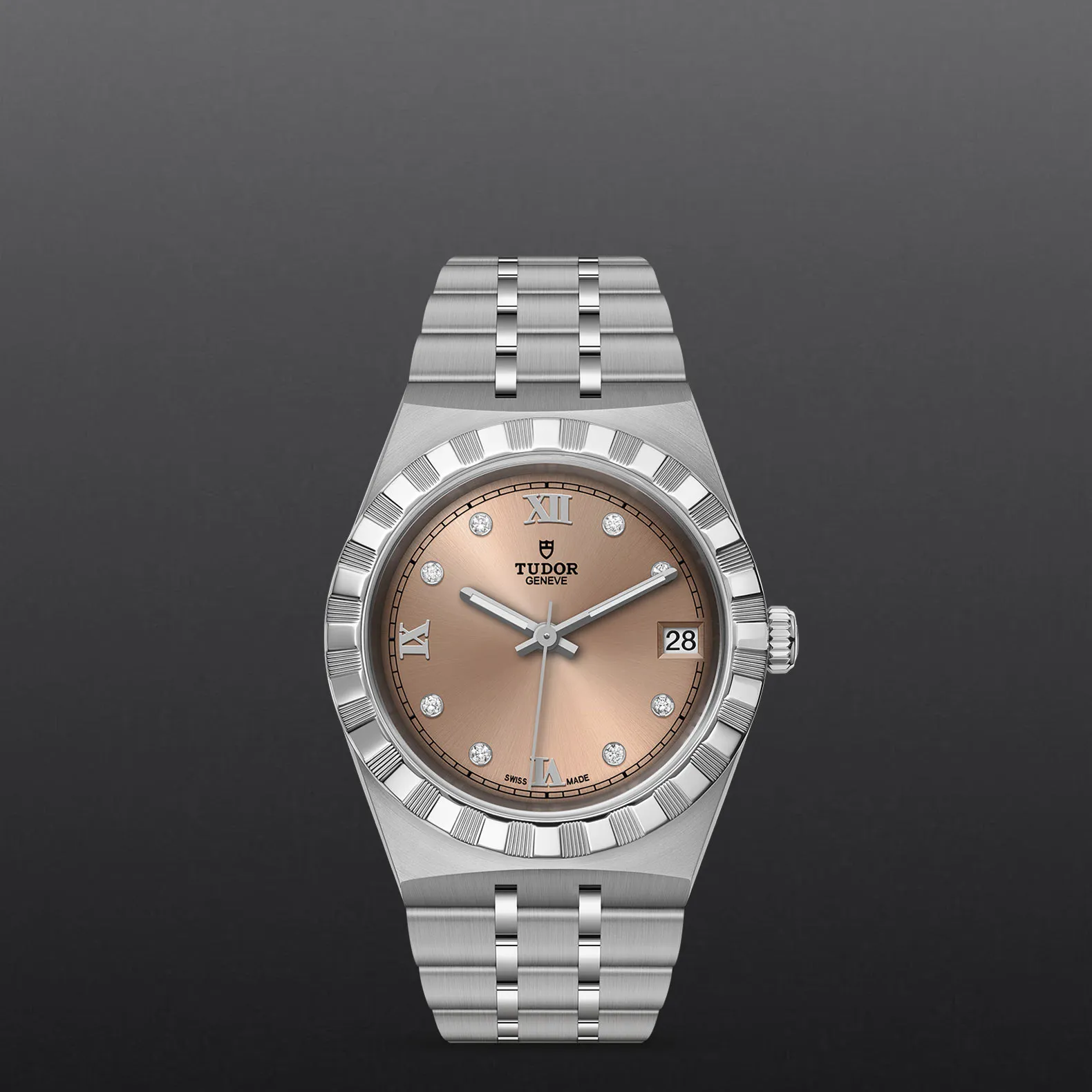 Il nome Royal fu usato per la prima volta da TUDOR negli anni ’50 per sottolineare la qualità superiore dei suoi orologi. La linea TUDOR Royal rientra nella tradizione del Marchio di proporre segnatempo dallo stile sportivo ed elegante, con movimenti automatici e bracciali integrati, ad un prezzo accessibile ma che non scendano a compromessi sulla qualità. Orologi dalle prestazioni tecniche all’avanguardia e l’estetica raffinata, al crocevia tra i modelli classici e quelli sportivi, i segnatempo di questa linea sono disponibili in acciaio o acciaio e oro e proposti in quattro misure con una vasta selezione di quadranti.