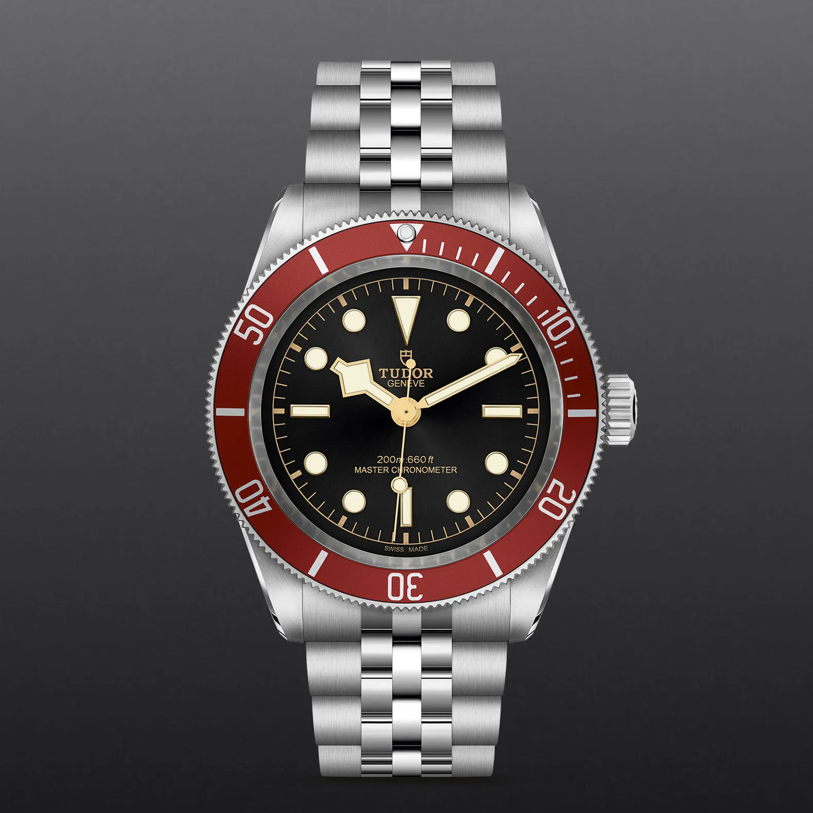 Il Black Bay rende omaggio a 60 anni di tradizione nella produzione di orologi subacquei. Le linee d’insieme e il quadrante e il vetro bombati di questo modello iconico sono un riferimento ai primissimi orologi subacquei TUDOR. Le lancette dalla caratteristica forma spigolosa, note come “Snowflake”, si ispirano agli orologi consegnati in grandi quantità alla Marina francese negli anni ’70. Quest’anno la linea Black Bay si espande per accogliere un nuovo modello TUDOR certificato dal METAS, caratterizzato da un’estetica monocromatica.