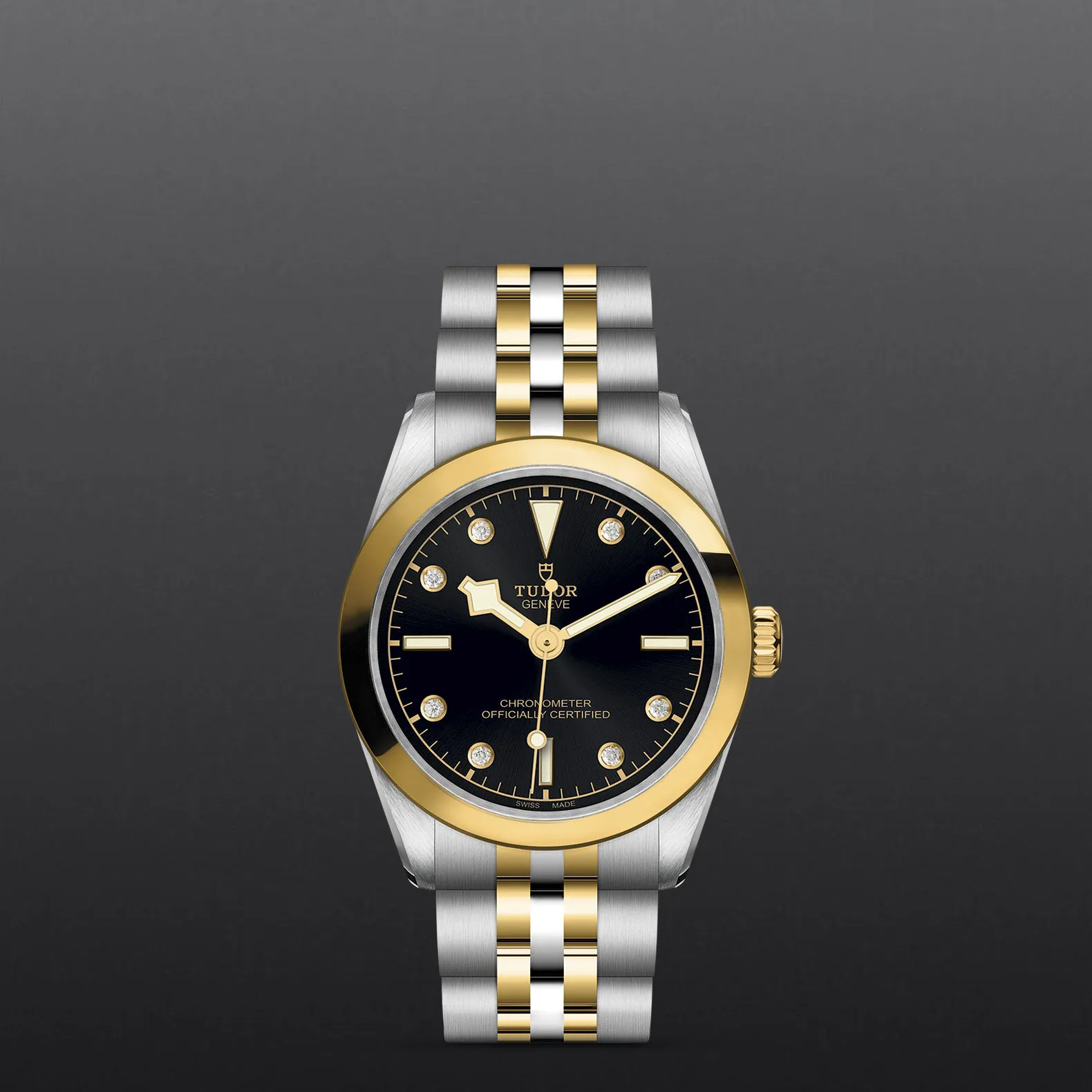 Prime maglie centrali in acciaio o in oro giallo massiccio. Le altre maglie centrali sono costituite da un’anima in acciaio rivestita da 0,2 mm di oro giallo. Chiusura pieghevole TUDOR “T?fit” con fermaglio di sicurezza. Il logo sul fermaglio è realizzato.