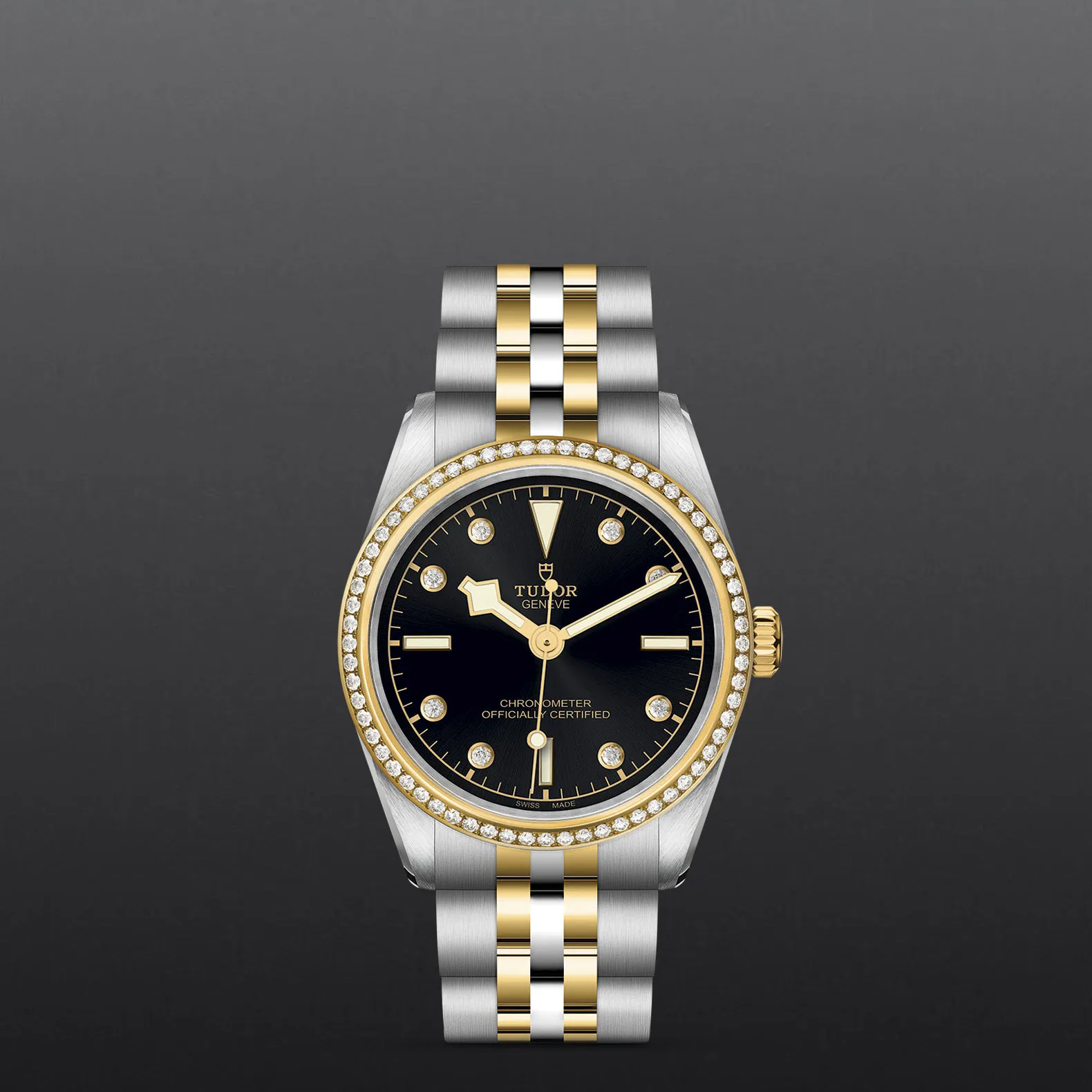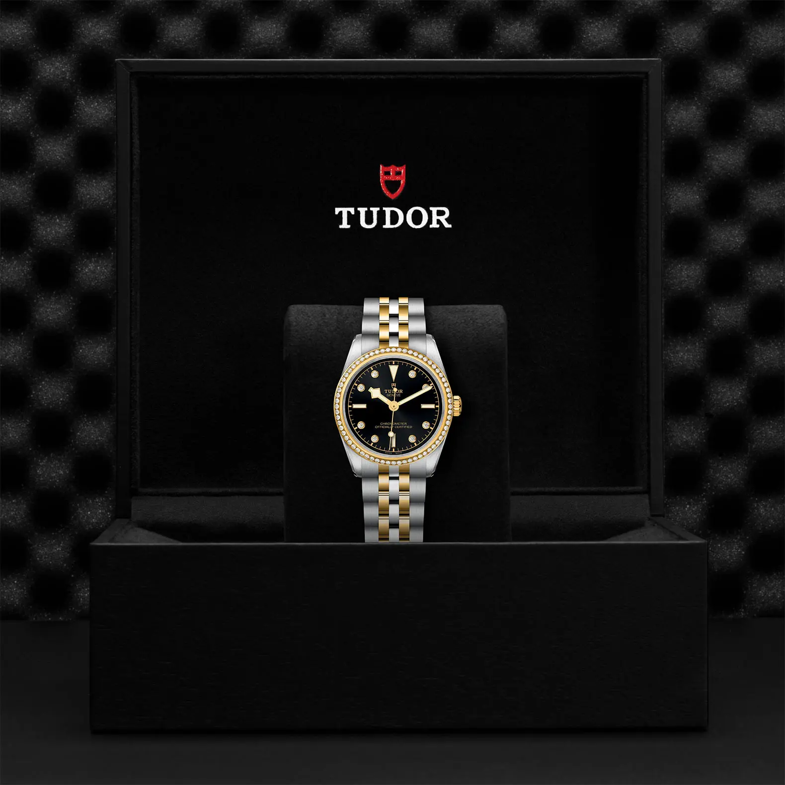 Prime maglie centrali in acciaio o in oro giallo massiccio. Le altre maglie centrali sono costituite da un’anima in acciaio rivestita da 0,2 mm di oro giallo. Chiusura pieghevole TUDOR “T?fit” con fermaglio di sicurezza. Il logo sul fermaglio è realizzato.