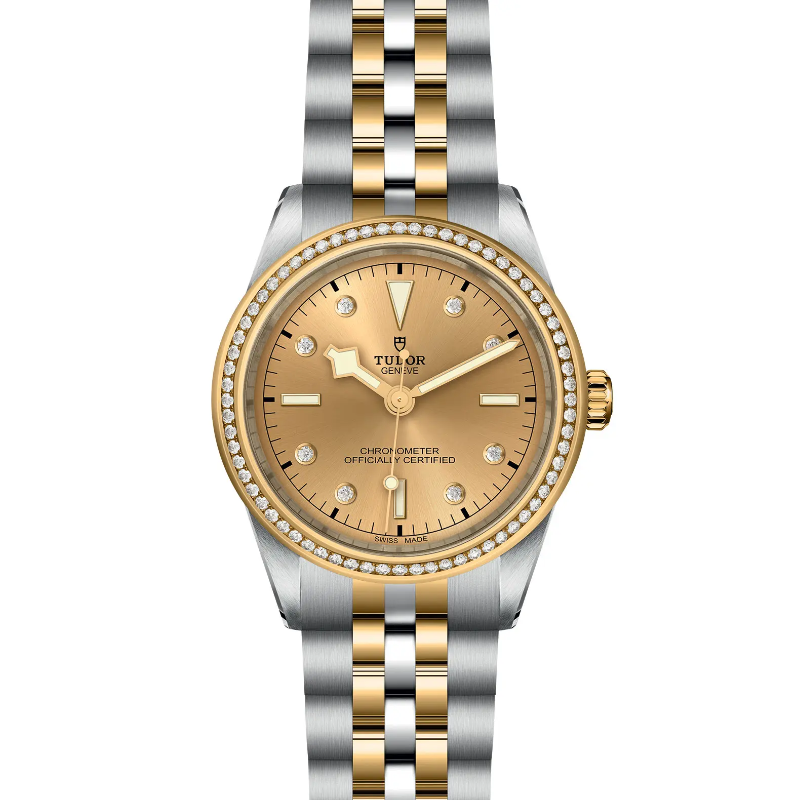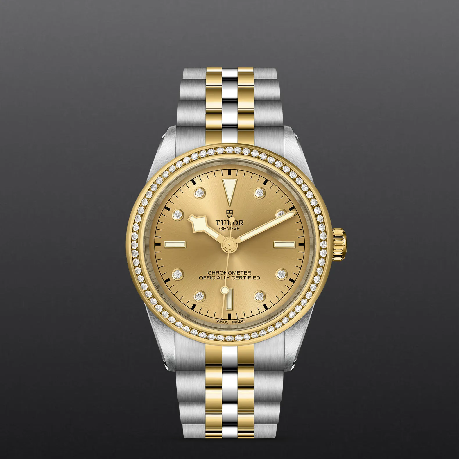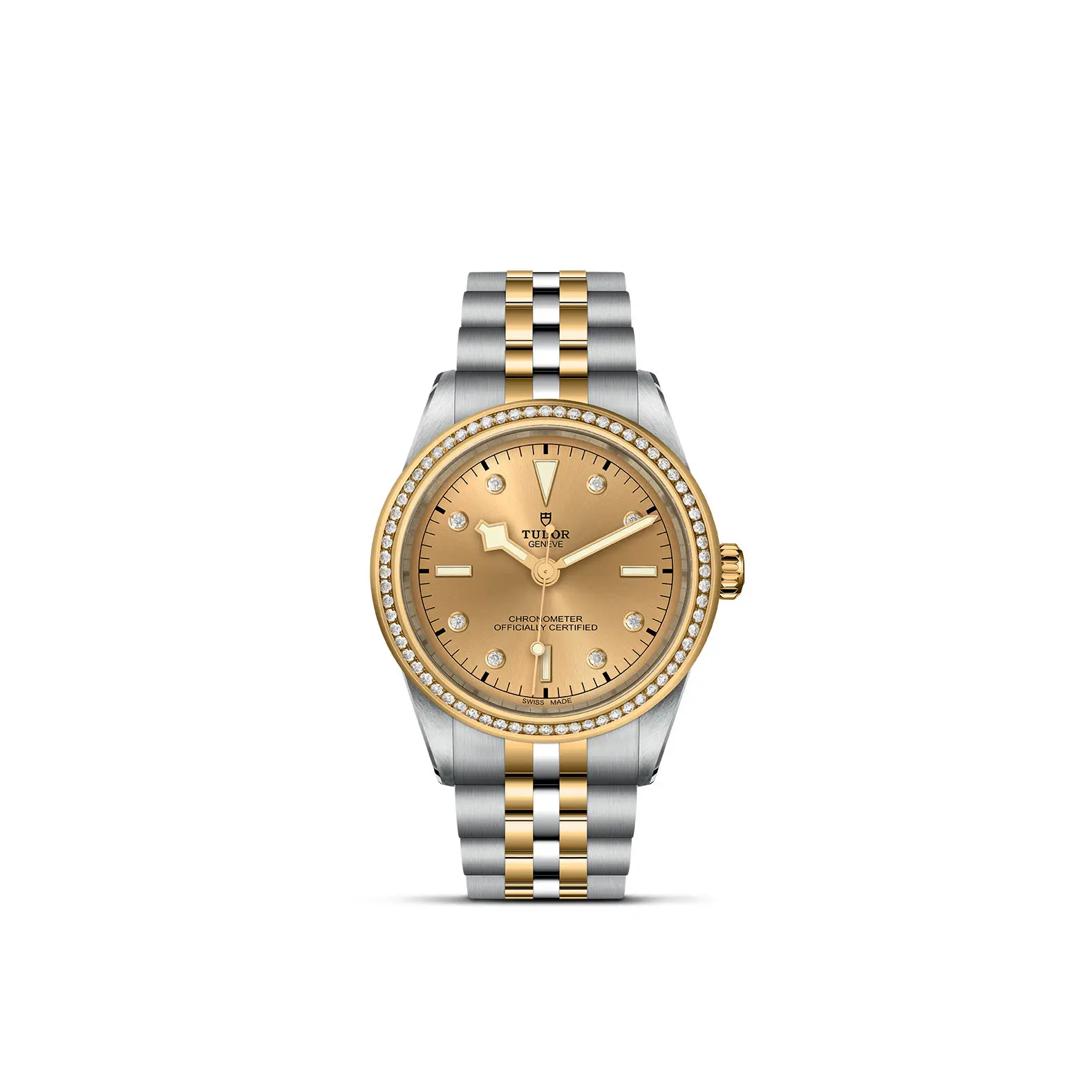 Prime maglie centrali in acciaio o in oro giallo massiccio. Le altre maglie centrali sono costituite da un’anima in acciaio rivestita da 0,2 mm di oro giallo. Chiusura pieghevole TUDOR “T?fit” con fermaglio di sicurezza. Il logo sul fermaglio è realizzato.