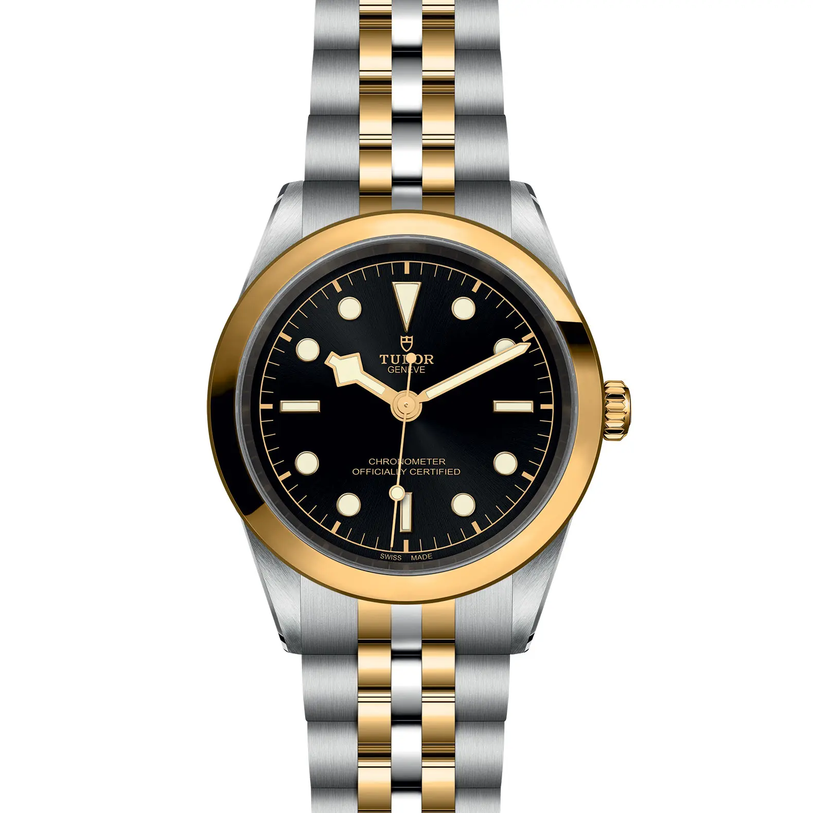 Prime maglie centrali in acciaio o in oro giallo massiccio. Le altre maglie centrali sono costituite da un’anima in acciaio rivestita da 0,2 mm di oro giallo. Chiusura pieghevole TUDOR “T?fit” con fermaglio di sicurezza. Il logo sul fermaglio è realizzato.