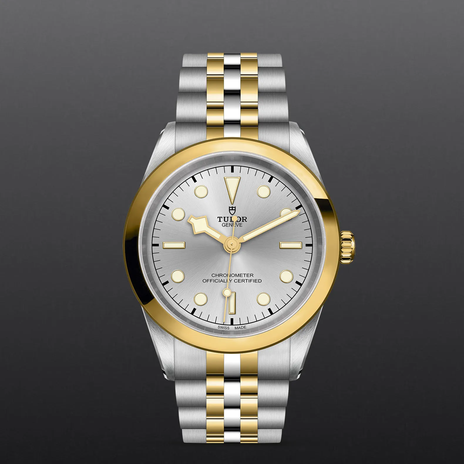 Prime maglie centrali in acciaio o in oro giallo massiccio. Le altre maglie centrali sono costituite da un’anima in acciaio rivestita da 0,2 mm di oro giallo. Chiusura pieghevole TUDOR “T?fit” con fermaglio di sicurezza. Il logo sul fermaglio è realizzato.